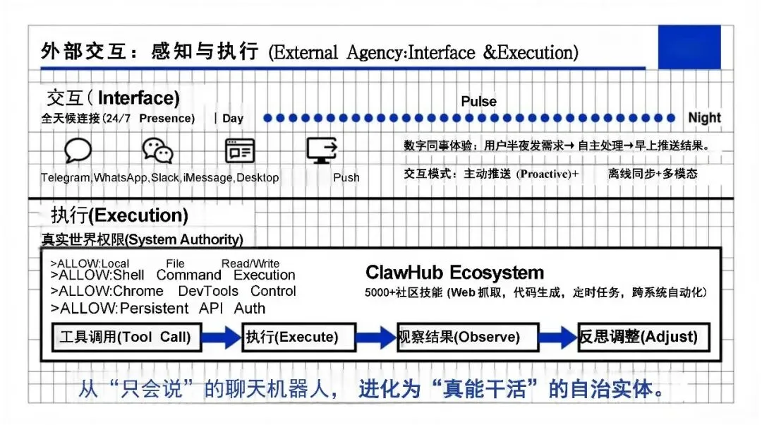 这四大能力的组合,让OpenClaw从"只会说"的聊天机器人,进化为"真能干活"的自治实体。