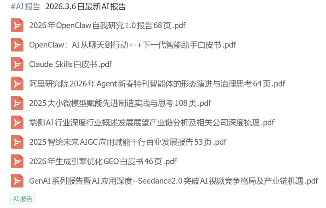如果您想下载本篇精选报告《2026年OpenClaw发展研究1.0报告》(75页),请扫下述星球二维码进入星球,按报告名称搜索即可。