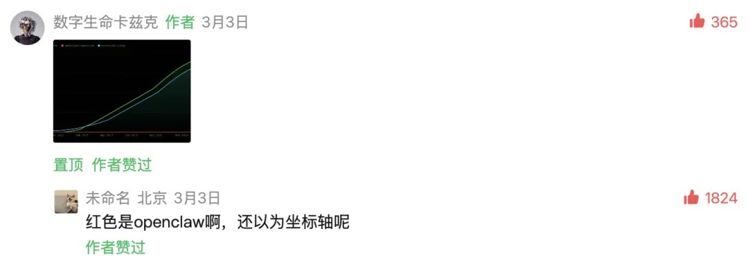 说实话第一次看到这张图的时候,我真以为红色那条是坐标轴。卡神评论区有个 1800 多赞的留言说的就是这个,笑死我了。