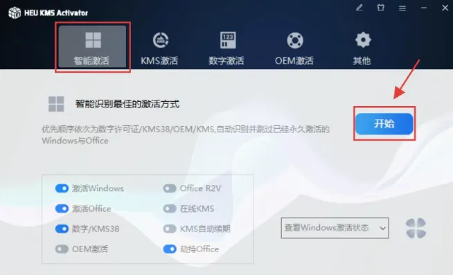 7、选择【智能激活】,点击【开始】。