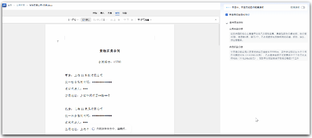 除此之外,智合AI还支持PDF扫描件直接上传审查,合同缺少关键条款时会自动补全、风格保持一致。