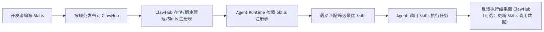 ClawHub 与 Skills、Agent Runtime 的协同逻辑如下: