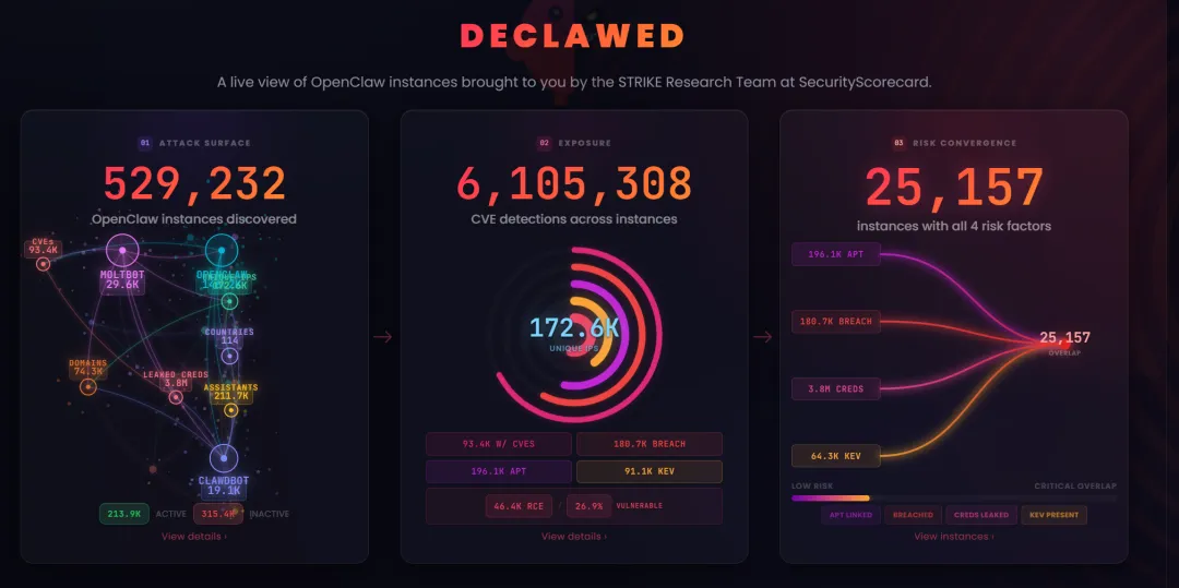 OpenClaw存在的核心设计漏洞"ClawJacked"(CVE-2026-25253)是当前最严峻的安全威胁。该漏洞允许攻击者实现无交互远程接管系统,其危害程度堪比当年震惊业界的Log4j漏洞。