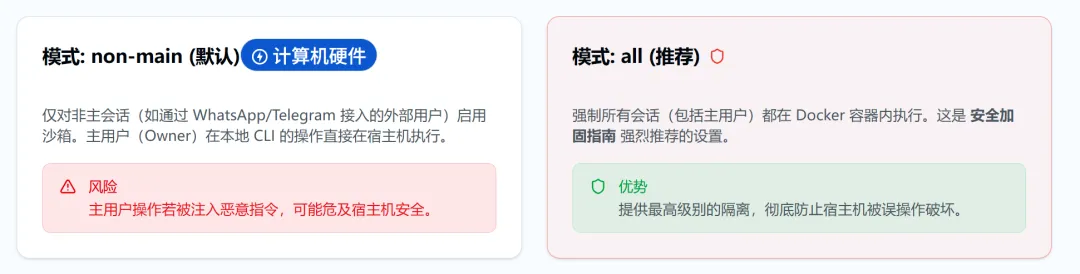限制OpenClaw对核心目录、敏感数据的访问权限 使用容器或虚拟机隔离运行环境 禁止以root或管理员账号运行
