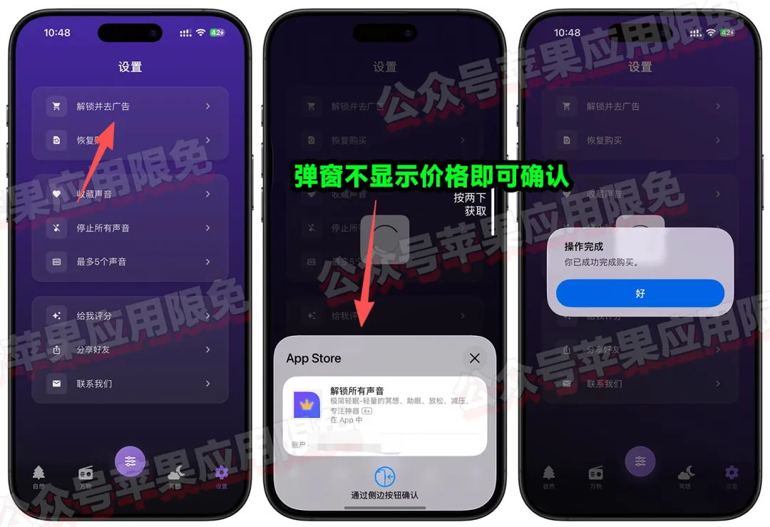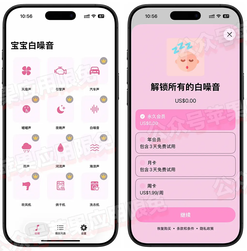 一款白噪音软件,目前可以免费获取它的终身订阅,打开软件点击代皇冠的图标进入内购,显示0即可免费获取。设备需装有 iOS 17 或更高版本。
