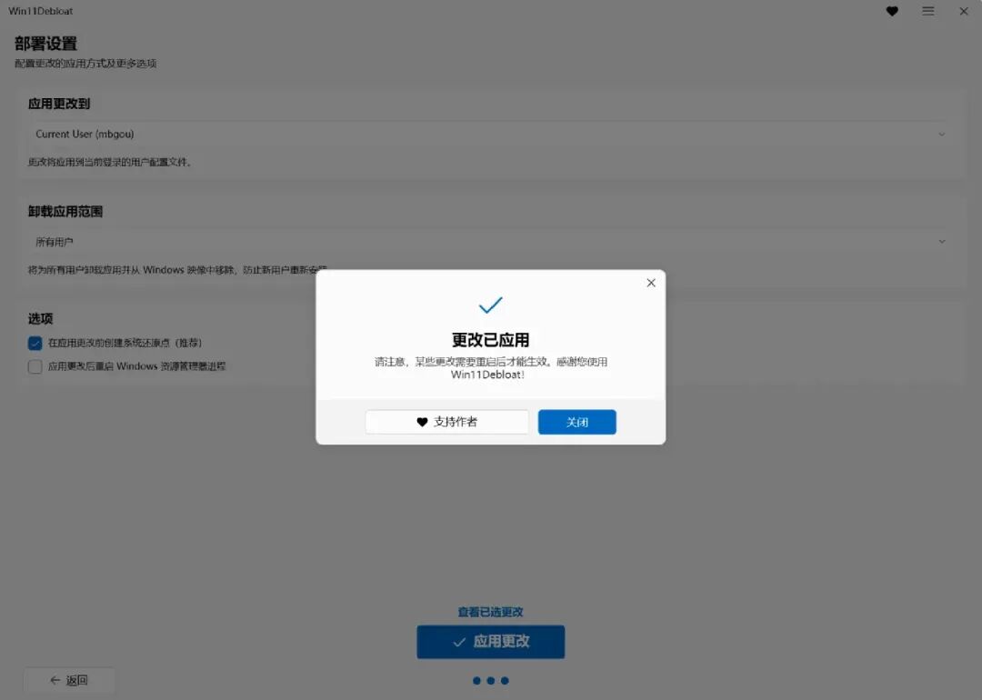 下面就是一键卸载和更改你上面勾选的内容,如果你担心误删一些内容还可以创建还原点。