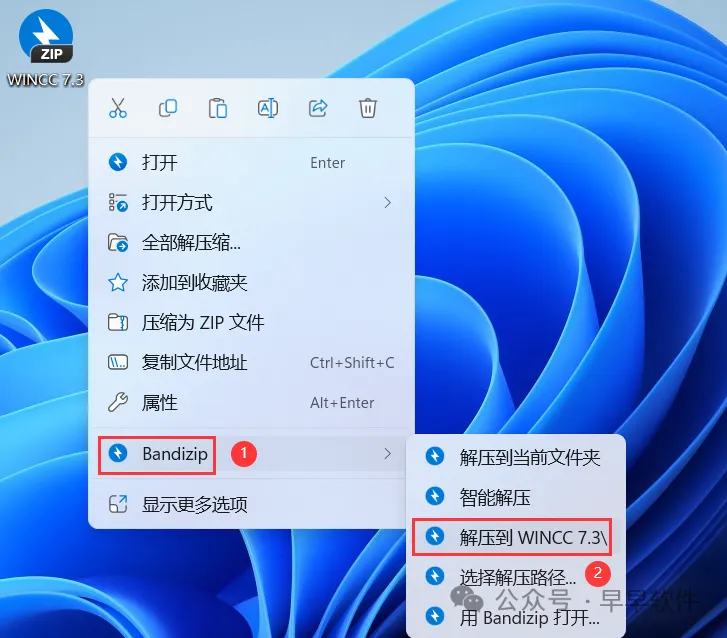 1、下载WINCC 7.3软件安装包到电脑上,右键选择【解压到WINCC 7.3\】