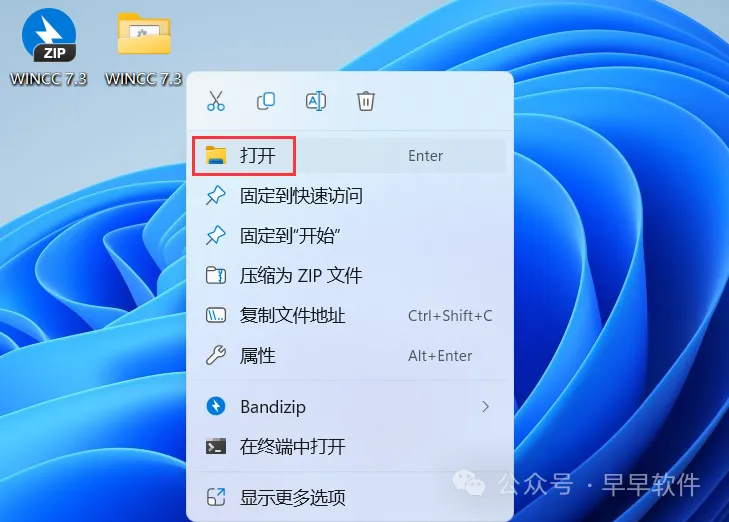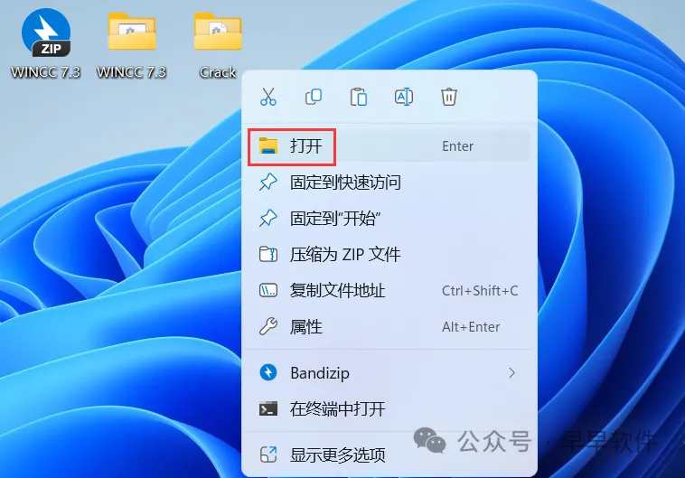 28、回到桌面,右键桌面上的【SIMATIC WINCC 7.3软件图标】,点击【打开】