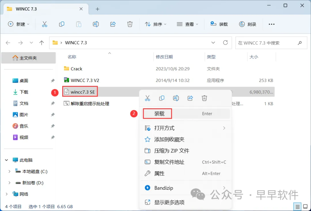 5、找到【wincc7.3 SE】文件,右键点击【装载】