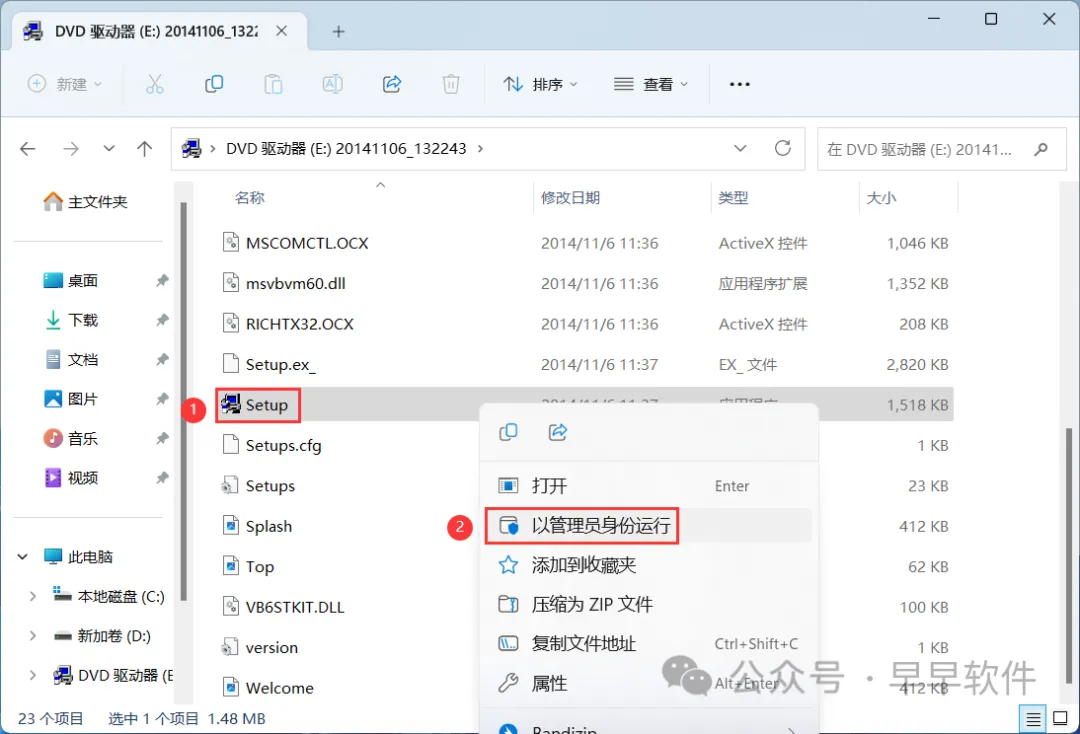 23、找到【setup】应用程序,右键选择【以管理员身份运行】它