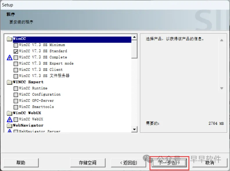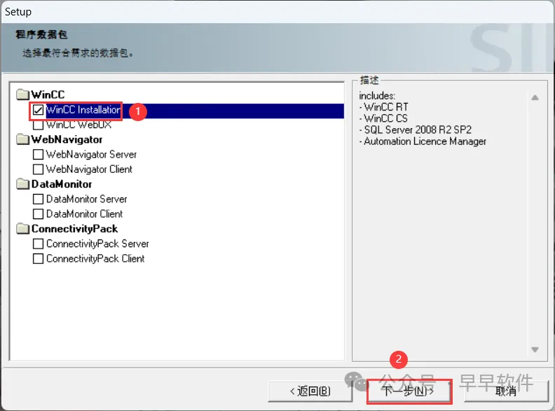 14、勾选【WinCC Installation】,再点击【下一步】