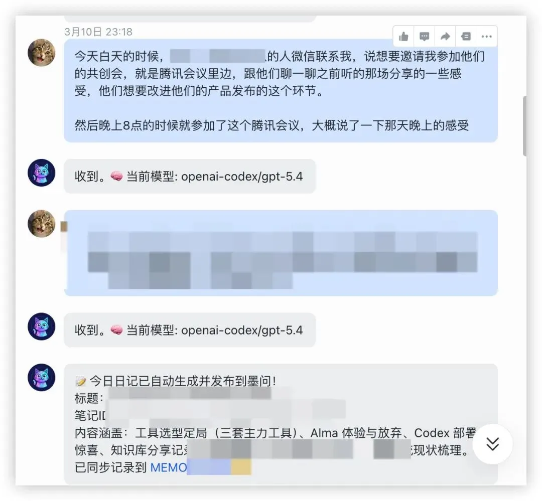 这一个半月,我慢慢把它从一个“能聊天的东西”,喂成了一个真正能接入工作和生活里的助理。现在我和我老婆都在用它,已经成了日常工作流的一部分。