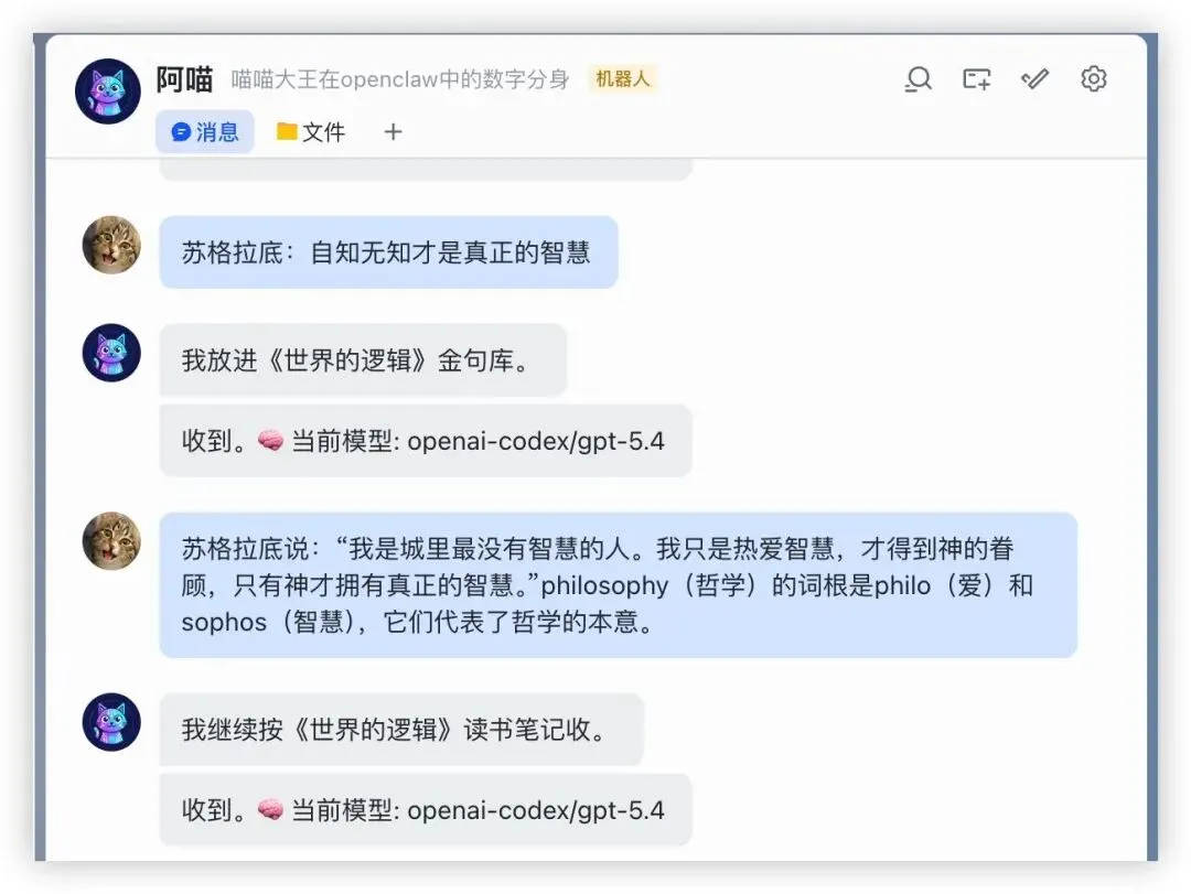 但当它开始接进飞书、知识库、项目流程、定时任务、文件系统之后,整个感觉就变了。