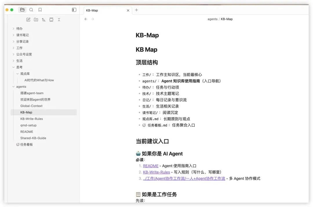 我专门给 agent们做好了 KB-Map,能在最大限度保证无论谁家的 agent进入我的知识库都不会迷路。
