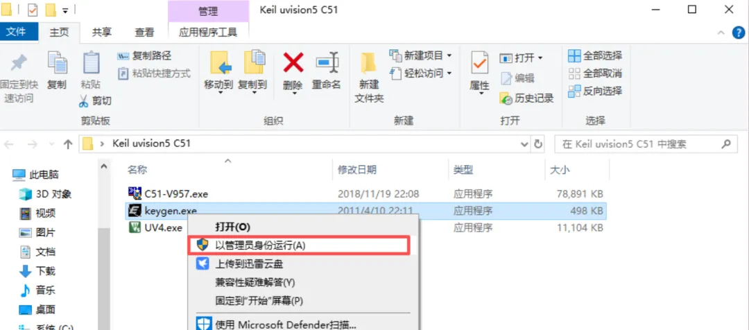 3、选中“C51-V957”安装程序 ,右击选择“以管理员身份运行”