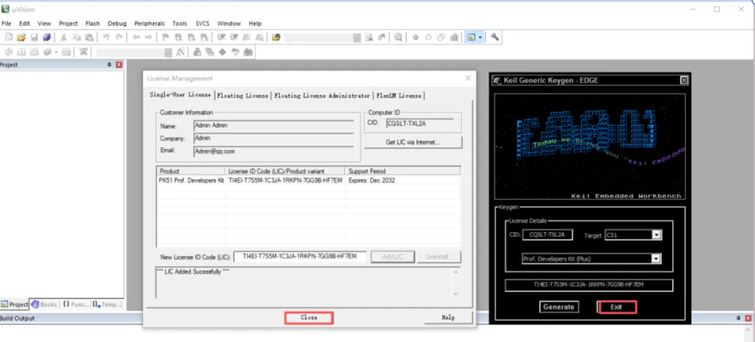 A1: 管理员权限:确保Keil和注册机都以管理员身份运行。 CID正确复制:检查复制的CID是否完整,粘贴后前后无空格。 Target选择:注册机中Target必须选择 ** ARM**(用于MDK),而非C51。重新激活:如失败,可先点击 Uninstall License删除旧许可证,重新生成激活码。