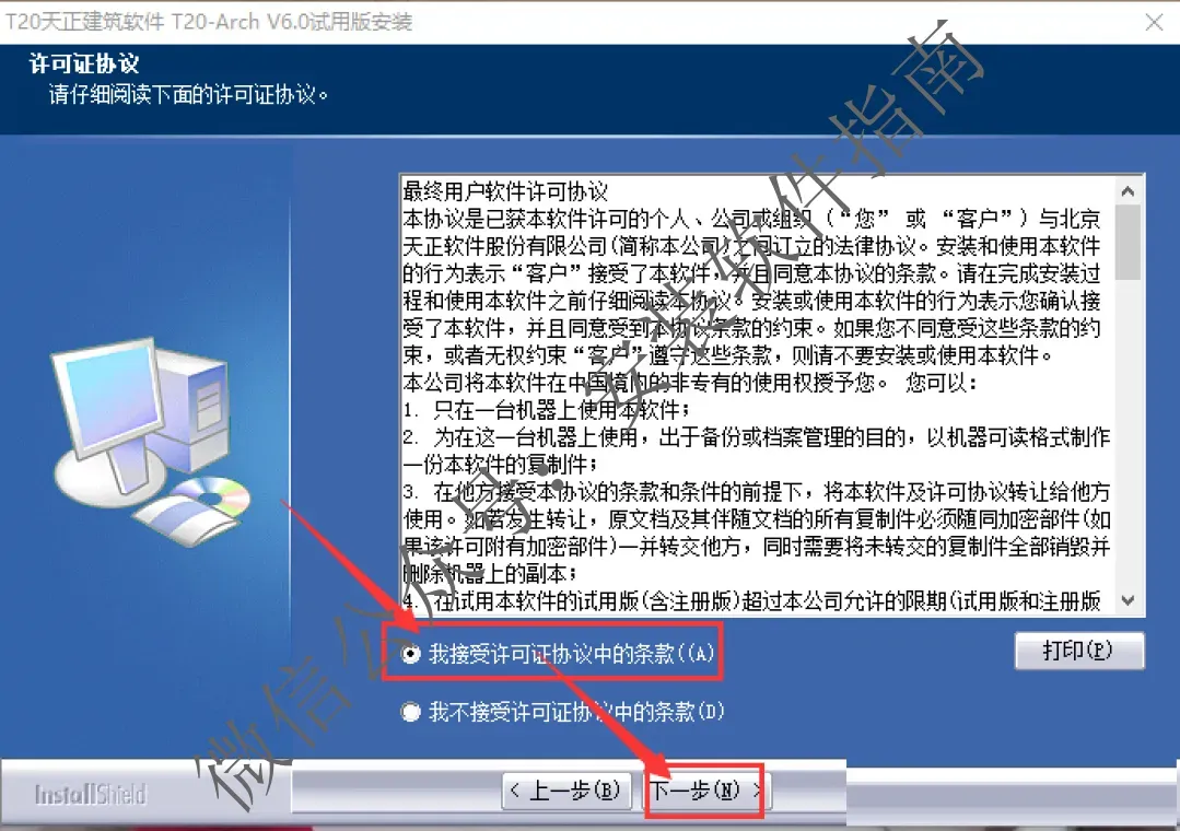 2、双击 T20天正建筑软件,开始安装