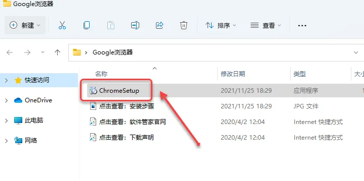 3. 双击【ChromeSetup.exe】。