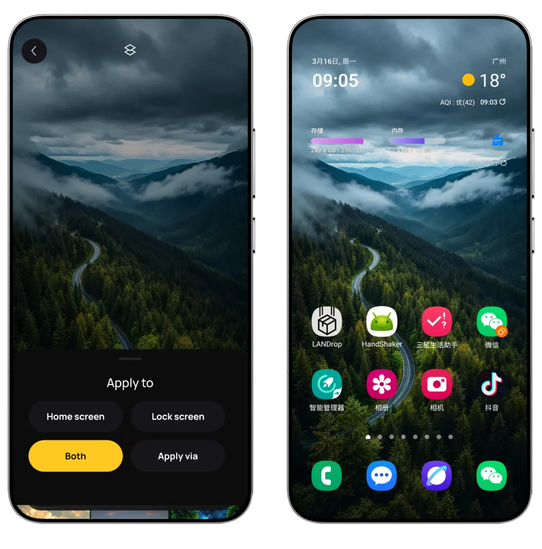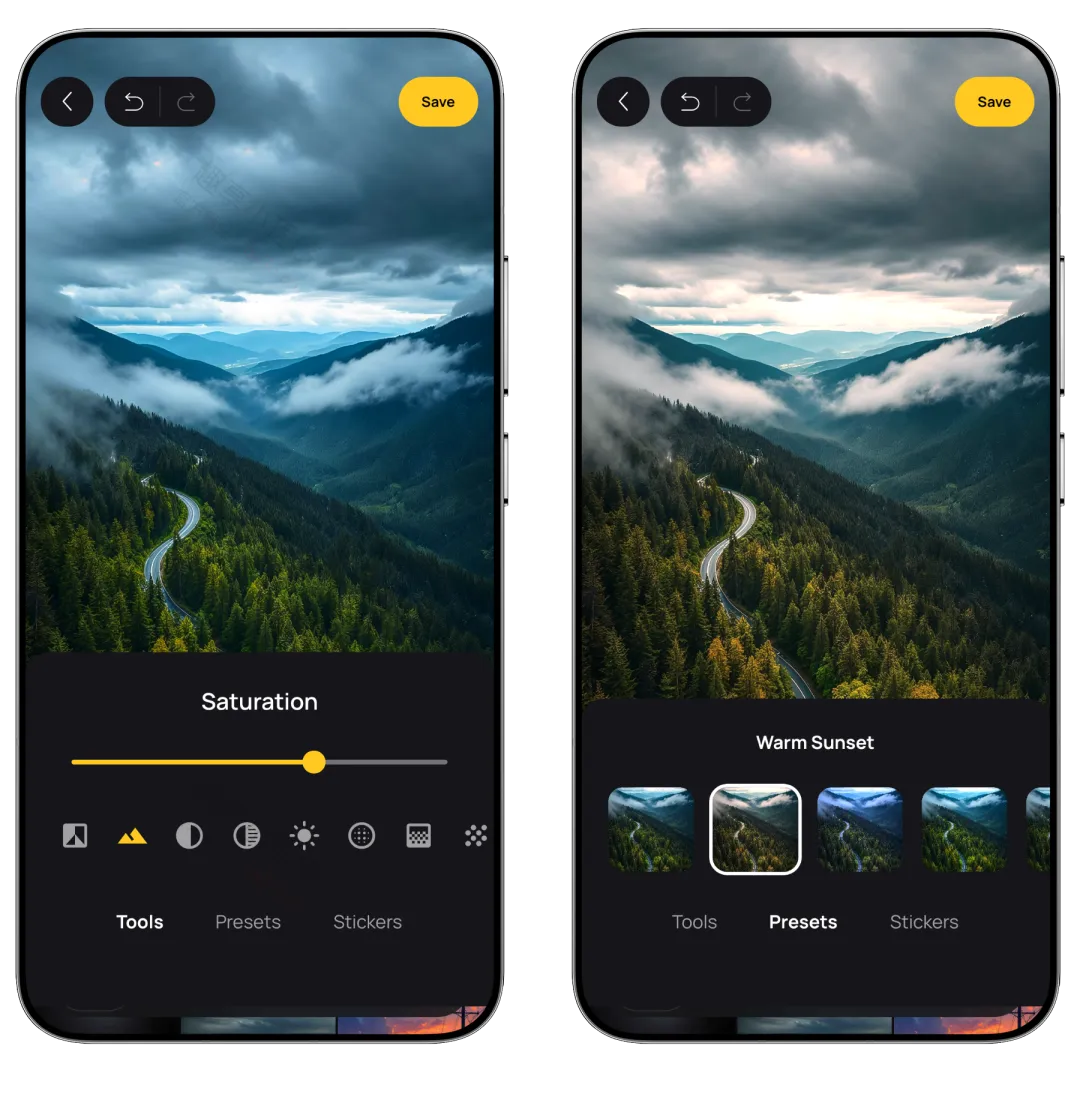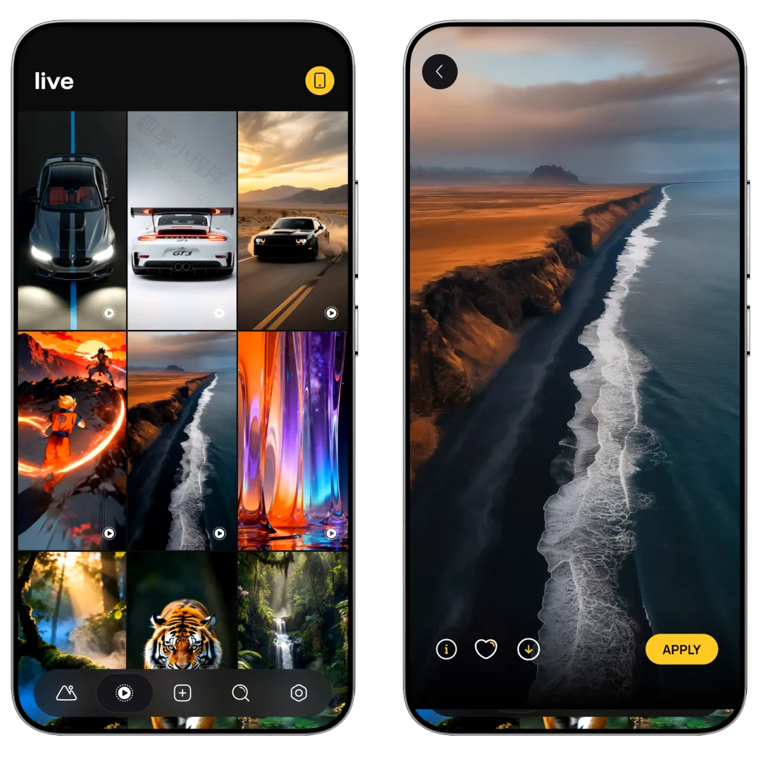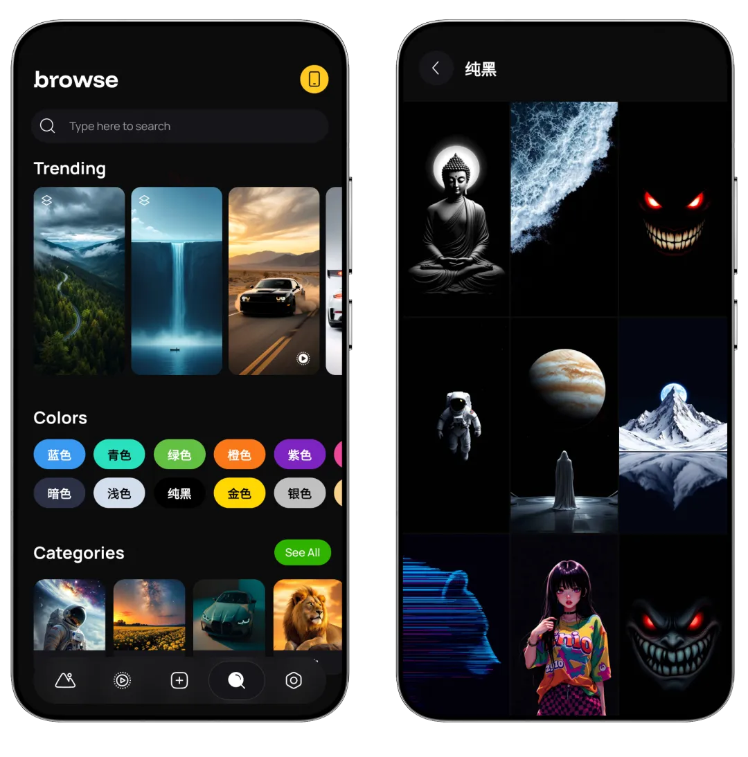 除了丰富的壁纸库,还搭配高级照片编辑器,可自由调整颜色、饱和度、亮度等参数,添加文字、贴纸或套用专业模板,同时支持上传个人照片进行定制,让每一张壁纸都能彰显独特风格。
