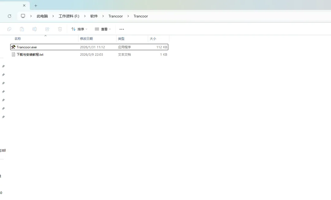 2.找到“Trancoor.exe”,右键以管理员身份运行