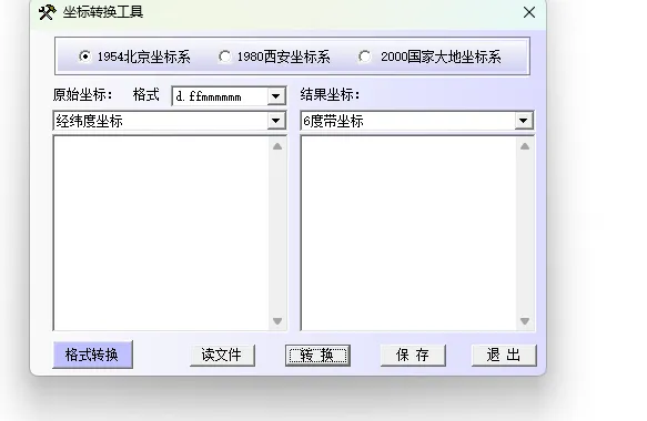 坐标转换软件Trancoor可以实现同一坐标在1954北京坐标系、1980西安坐标系、2000国家大地坐标系间转换,使用方便。
