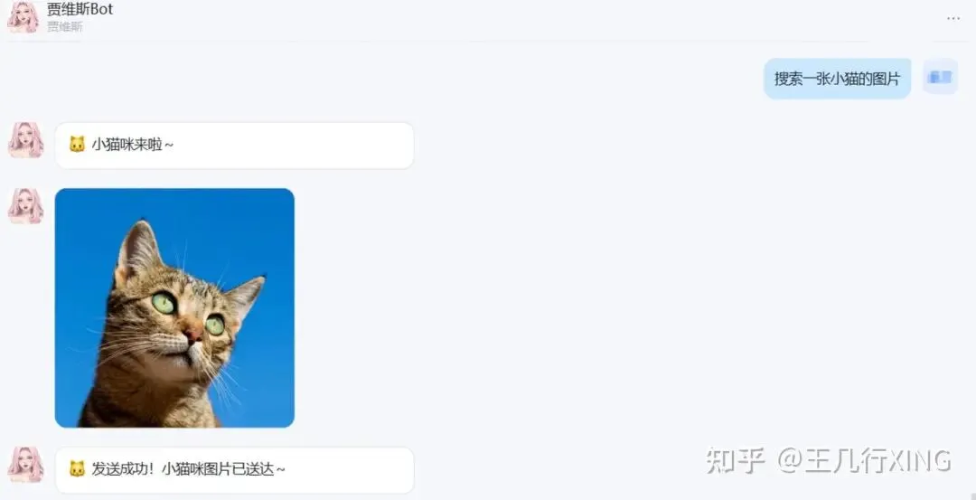 来看一下钉钉机器人的实际对话效果——支持图片搜索和发送: