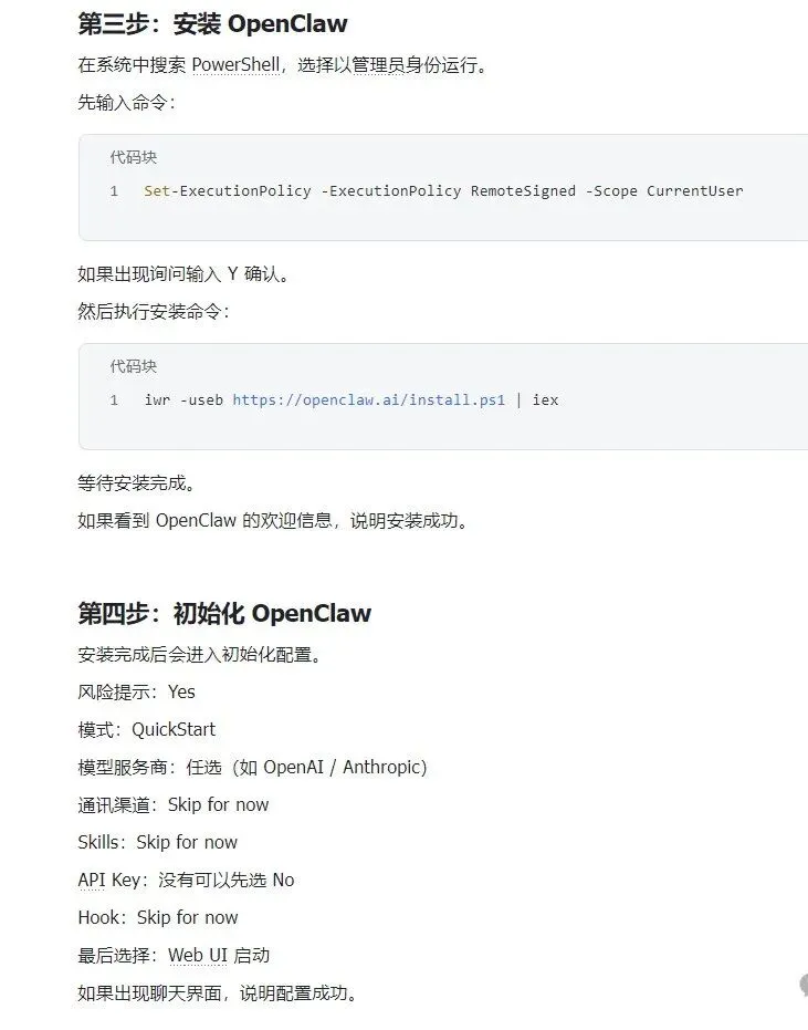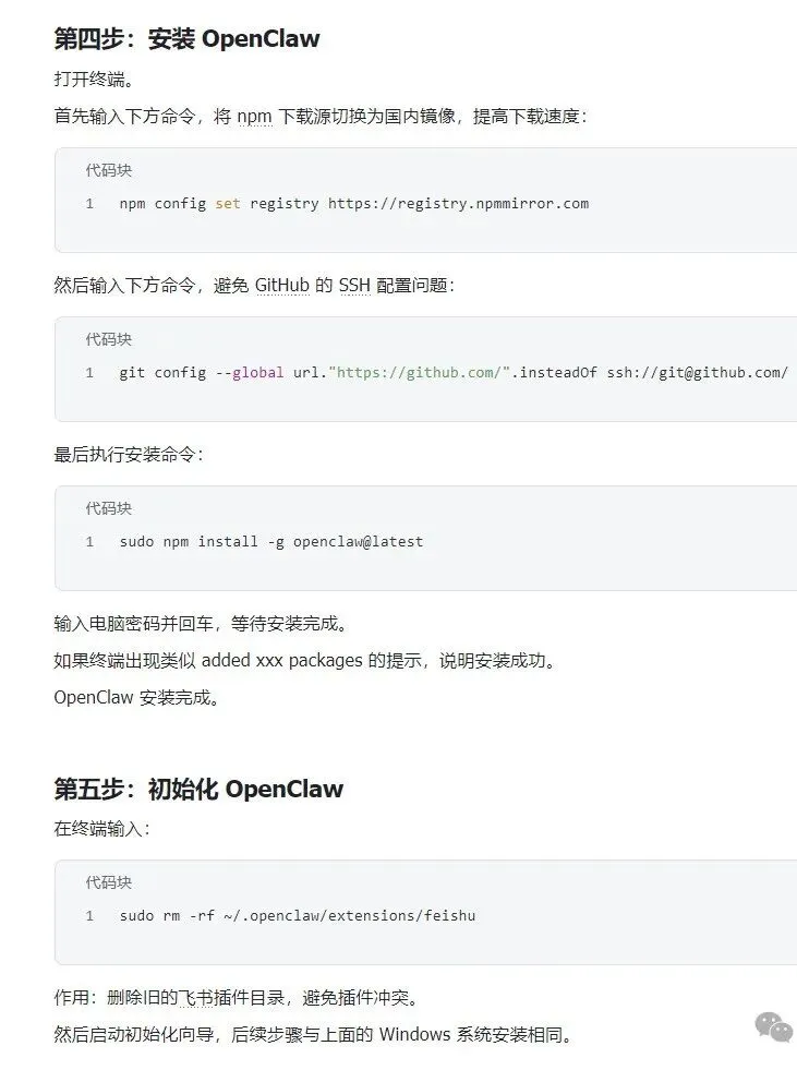 接下来会介绍Open Claw接入飞书的教程(Windows系统+macOS系统),同时博主还整理了安装教程的文字版,需要的可点下方链接自取即可👇