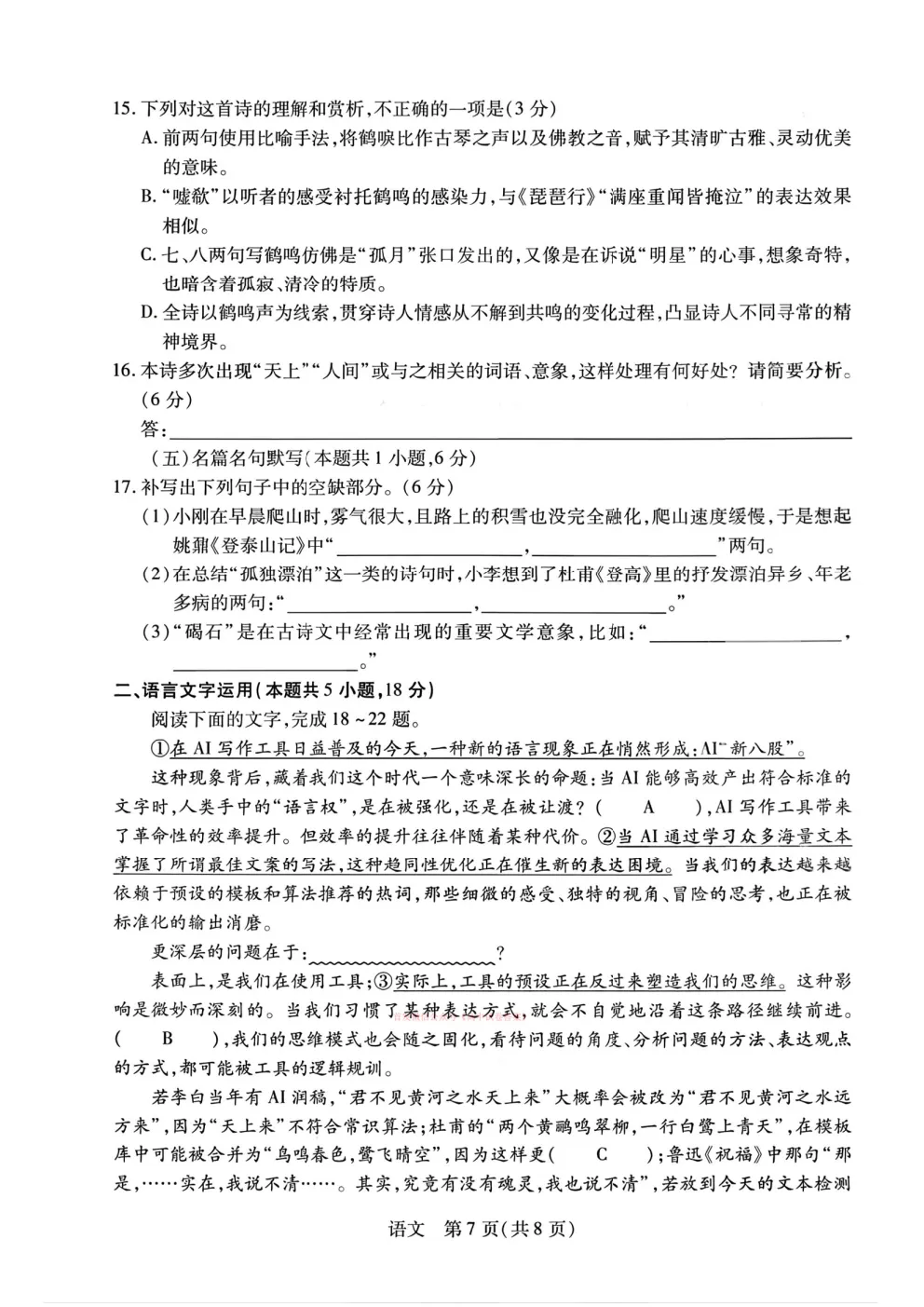 2026合肥八中高三3月联考全科下载合肥八中链接: https://pan.baidu.com/s/1IkR9Ue4o8s-8_oBaWJBj6w?pwd=6666 提取码: 6666全科请下载查看,文章仅提供部分预览文末点击"阅读原文"即可下载