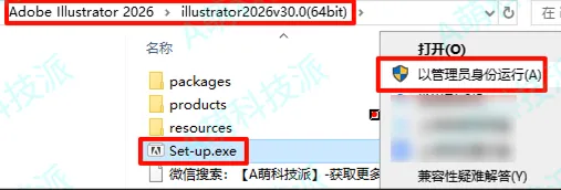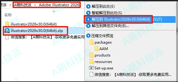 1、下载Illustrator2026软件安装包到电脑上,右键选择【解压到当前文件夹】。
