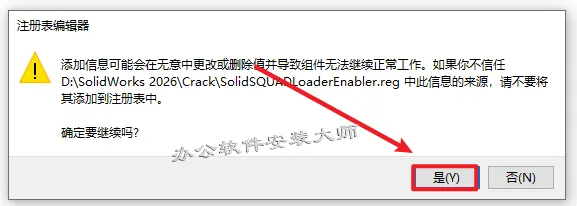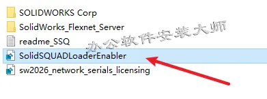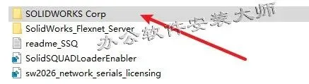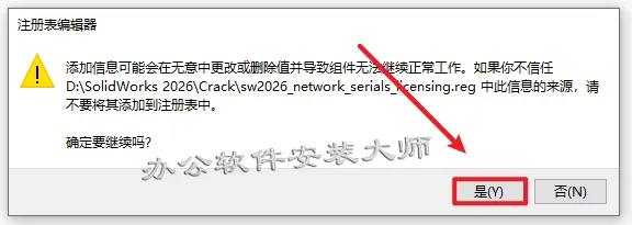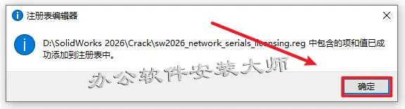 2.进入解压好的文件夹,打开【Crack】文件夹,双击【sw2026_network_serials_licensing.reg】运行注册表文件