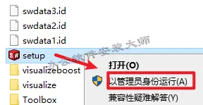 13.选中【setup】程序,鼠标右键选择【以管理员身份运行】。