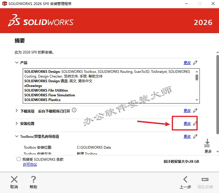 18.点击【安装位置】后面的【更改】修改程序的安装路径。