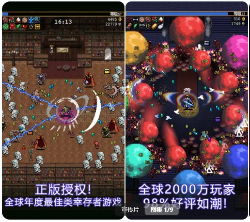 哥特式恐怖画风配上肉鸽元素,玩法简单到离谱,就是在怪物的重重包围里杀出血路。每次升级选技能,角色越打越强,满屏特效清怪的爽感,没有任何游戏能替代。