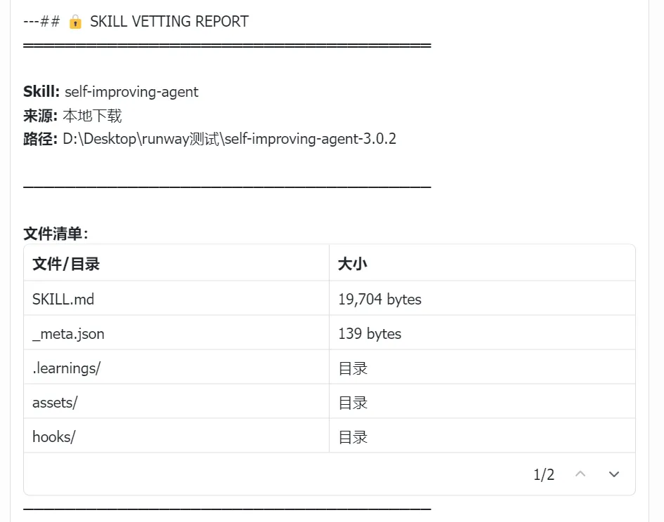 这是一个安全审查skills的skill。现在我每次安装skill,小龙虾都会先给我出一份安全审查报告,确认没有风险,再安装。
