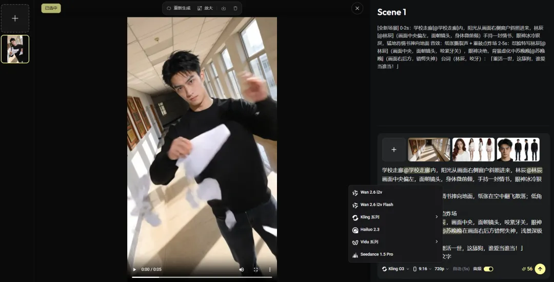 多宫格分镜生视频模式(✅重点):它不是一张张抽盲盒,而是全盘锁定逻辑。男女主怎么走位、怎么对视,逻辑流畅、不跳轴