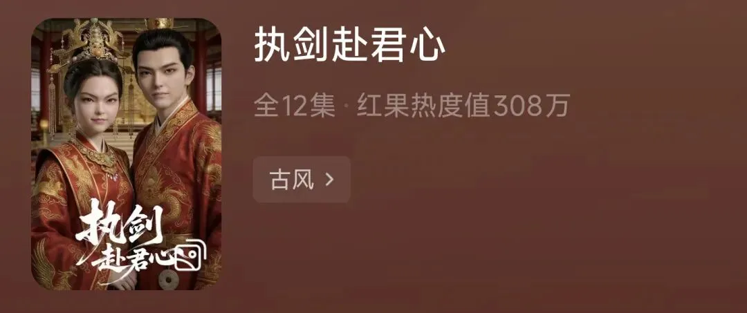 抖音/快手/视频号/红果短剧: 用 Zopia 制作的AI短剧《执剑赴君心》在红果短剧上线当天热度就已超 308 万,轻松赚取平台流量分成