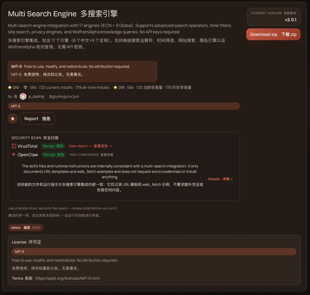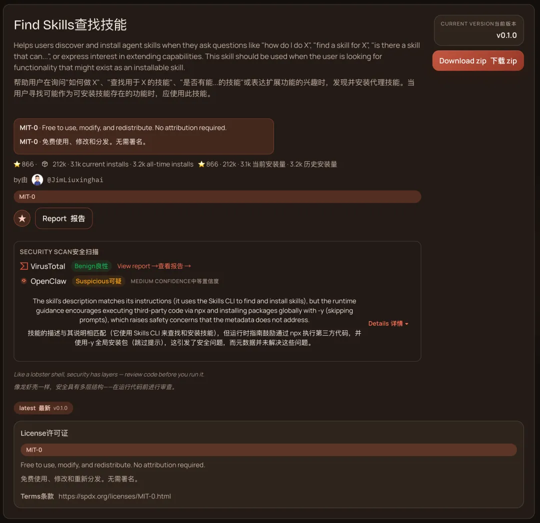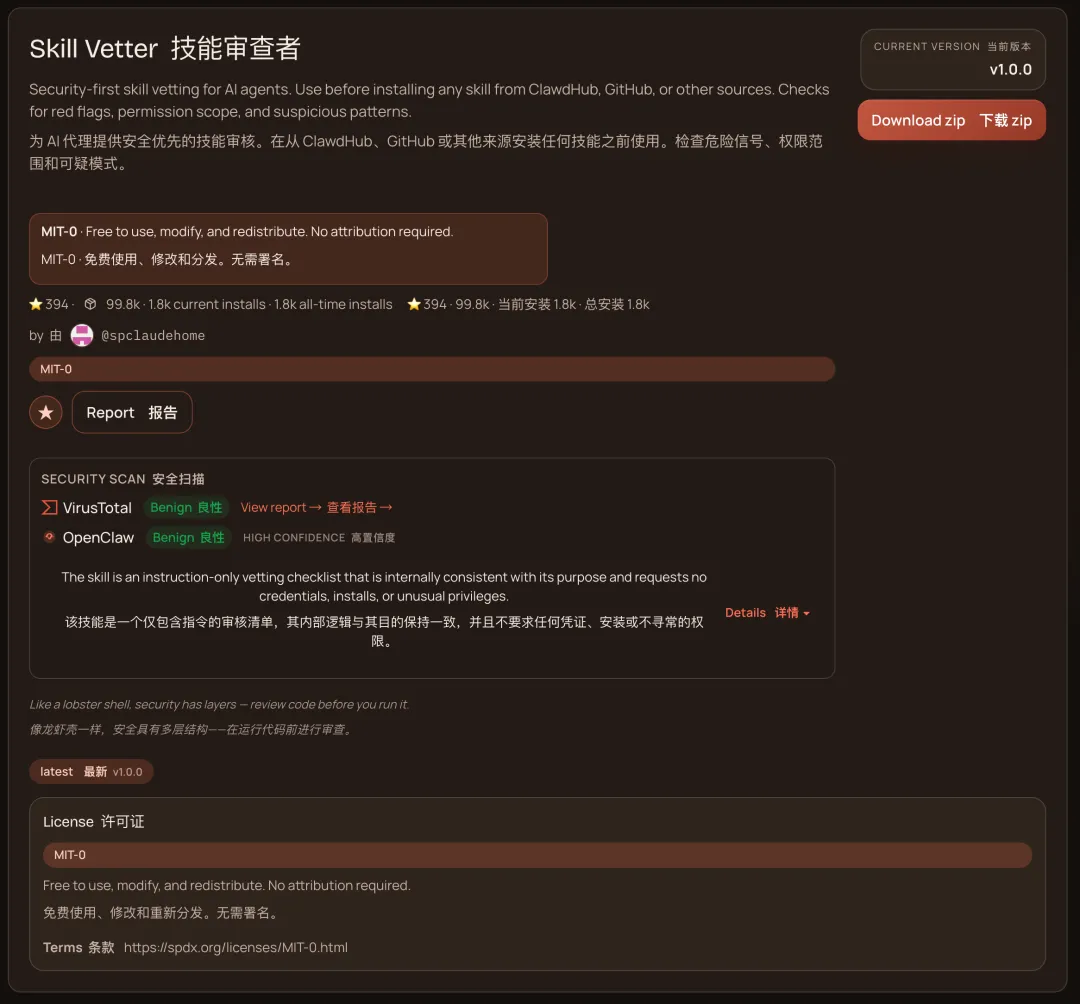 这是一个负责先帮你看看,这个 skill 到底靠不靠谱,权限是不是过大,值不值得继续碰。