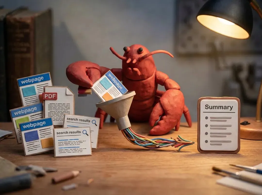 更聪明一点的做法,是先让 OpenClaw 搜一轮,把官网、新闻、讨论帖、实测内容抓下来,再压成一页摘要。