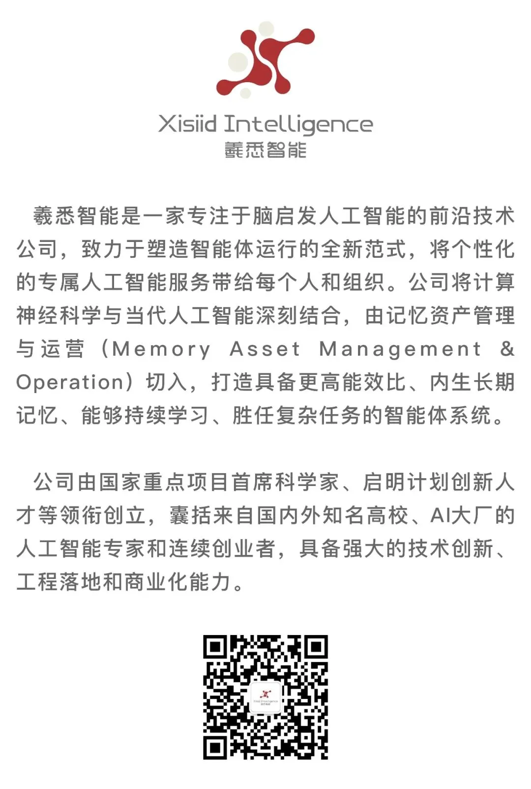 2026年创立羲悉智能,致力推动类脑智能的商业场景应用,为个人、企业构建智能分身,实现亿级的智能互联生态