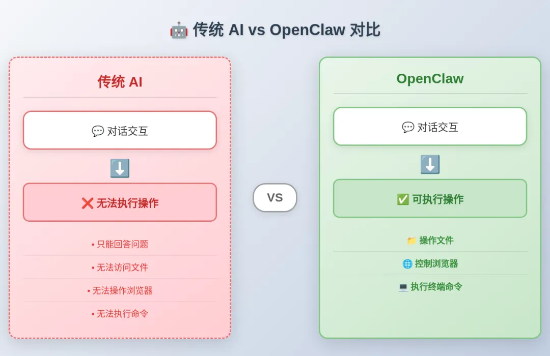 ✅ 回答问题 ✅ 生成内容 ✅ 提供建议 ❌ 但只能停留在"说"的层面