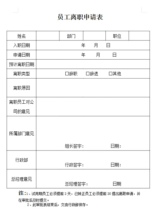 【高质量】模板员工离职辞职申请模板企业工厂工人技术员学校教师离职申请可编辑可打印【今日分享】【高质量】模板员工离职辞职申请模板企业工厂工人技术员学校教师离职申请word模板可编辑可打印自取链接:https://pan.quark.cn/s/f33360deeb2f