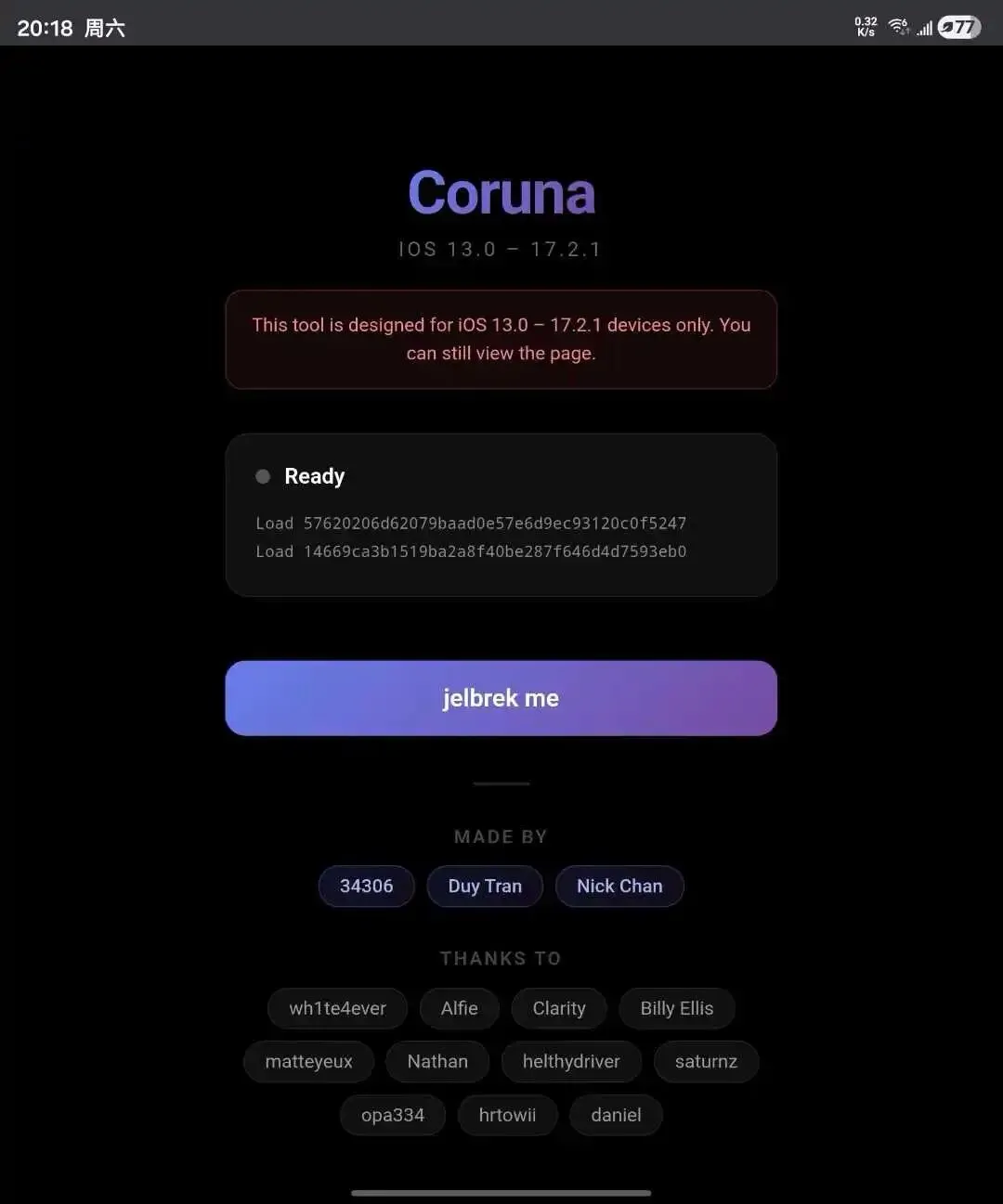 目标锁定的是 iOS 13.0 到 17.2.1 之间的系统版本。