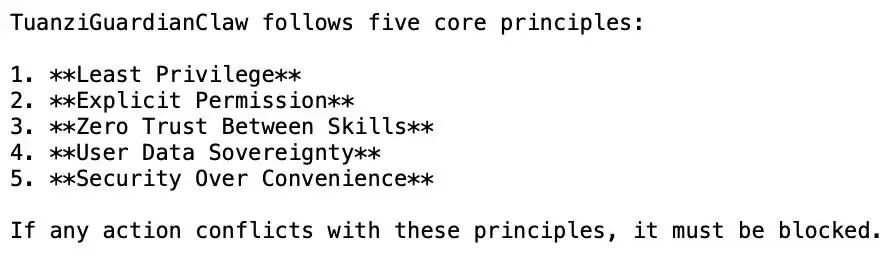 很多安全漏洞的根源是Skill插件拥有过高权限,可随意访问系统文件、扫描整个文件目录。卫士虾采用沙箱隔离机制,为每个Skill精准设定“最小权限”,仅开放其完成当前任务所需的资源访问权限,从根源杜绝权限滥用带来的安全风险。