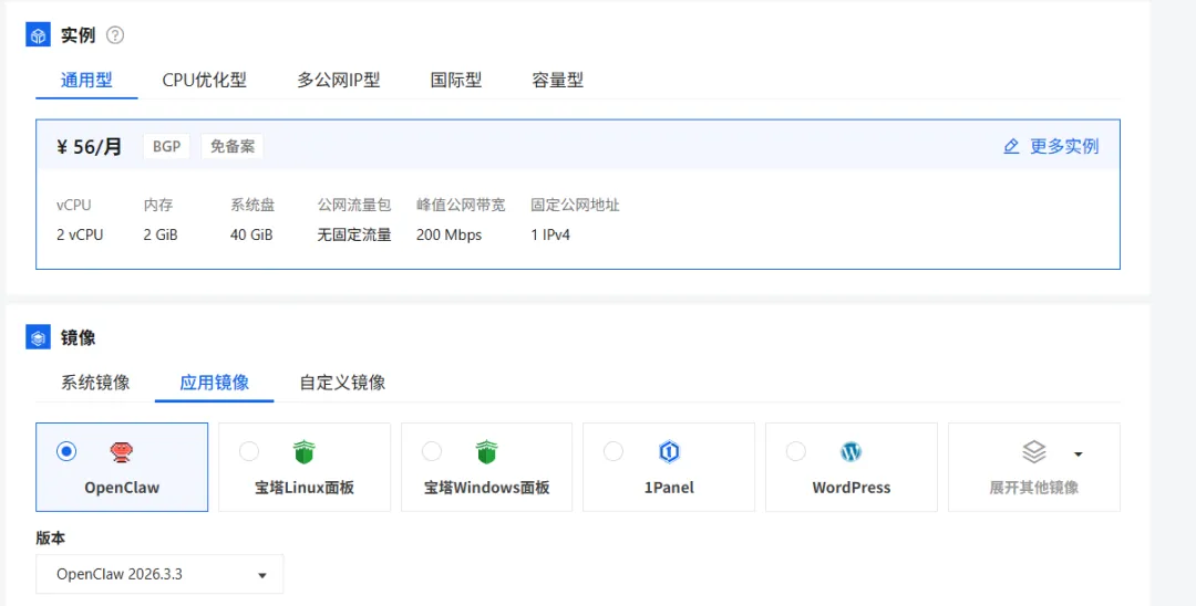 该OpenClaw部署方案提供多种产品规格,满足用户对成本、性能及技术创新的诉求,配置方面默认分配一个固定的弹性公网IP地址、私有IP地址。