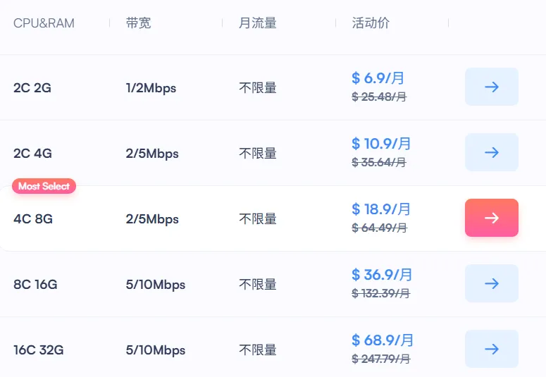 Amazon Lightsail按商家所选的实例套餐计费(例如4GB套餐),采用按需按小时计费模式,用多少付多少。每个套餐都有封顶价格,所以每月费用不会超过套餐标价。