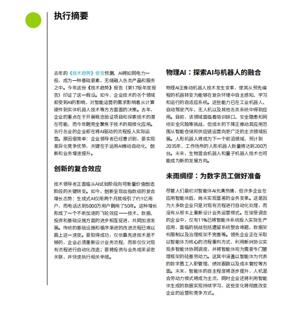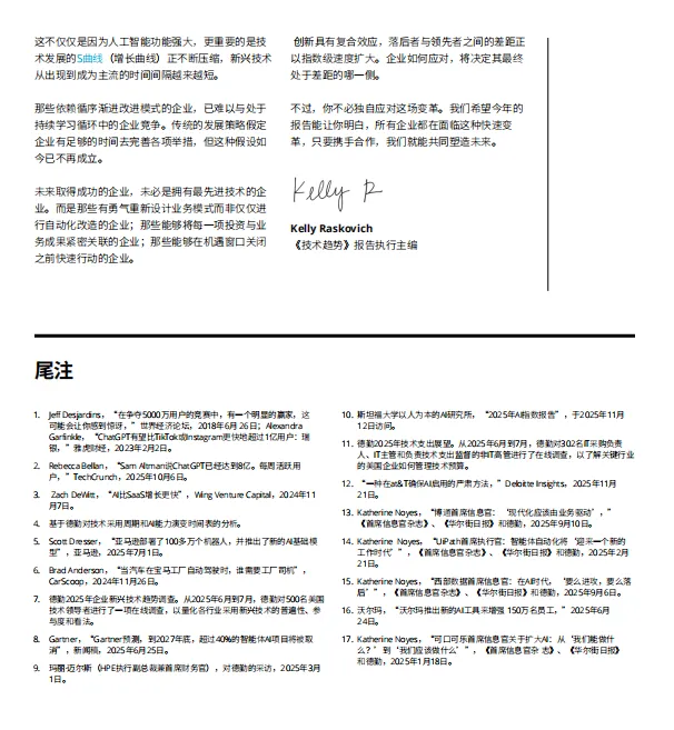 整篇报告强调,技术变革的速度与复合效应已从根本上改变竞争逻辑——未来的赢家,将是那些敢于重构业务模式、将投资与可衡量的业务成果紧密挂钩,并能在机遇窗口关闭前快速行动的组织。