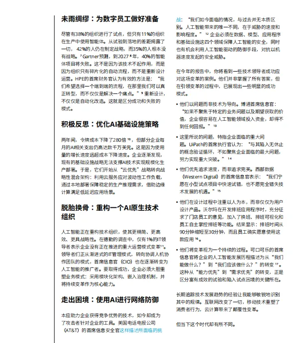 AI原生技术组织:技术组织的使命正从“维持运营”转向“引领战略”,CIO角色向AI布道者与协调者演变,模块化架构、人机协作人才体系和嵌入式治理成为高绩效组织的新标配。