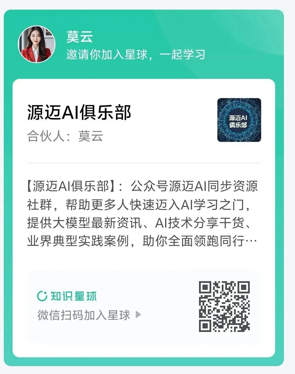 星球简介:公众号源迈AI同步资源社群,帮助更多人快速迈入AI学习之门,提供大模型最新资讯、AI技术分享干货、业界典型实践案例,助你全面领跑同行,养成AI思维,跟上时代的超级个体。目前已有几百份文件。未来持续更新。