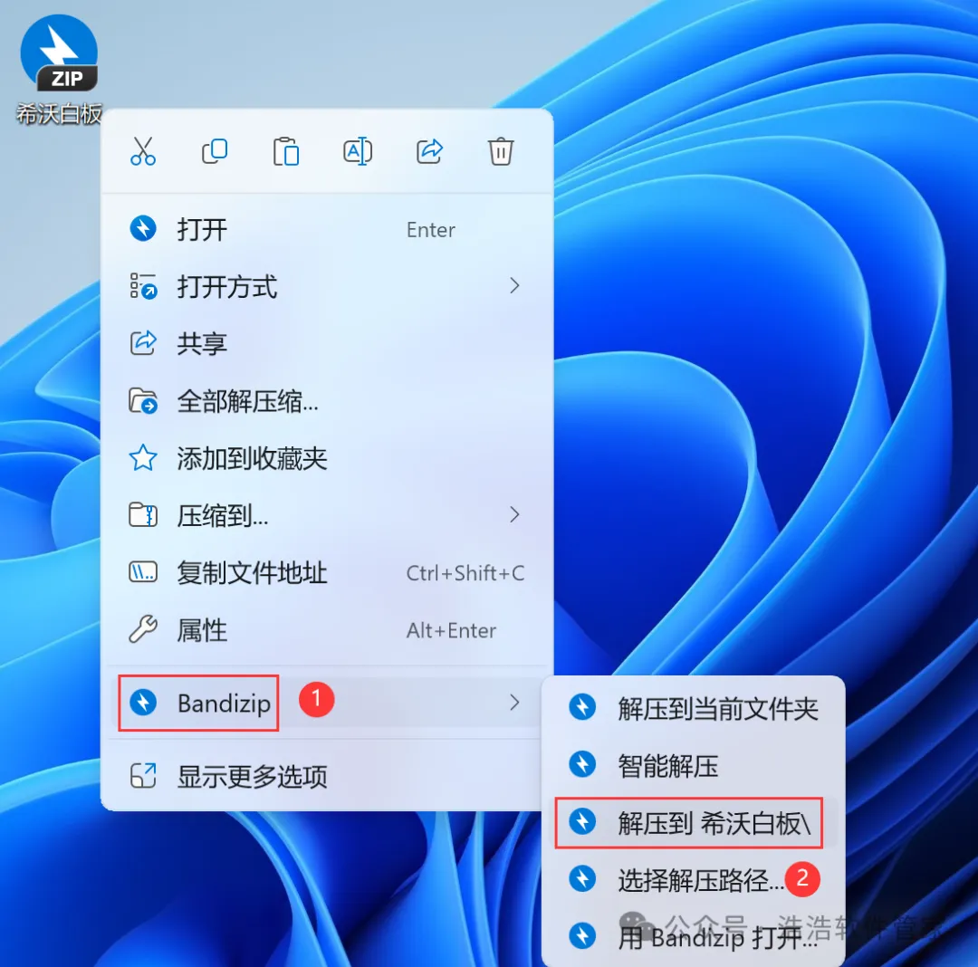 1、下载希沃白板软件安装包到电脑上,右键选择【解压到希沃白板\】
