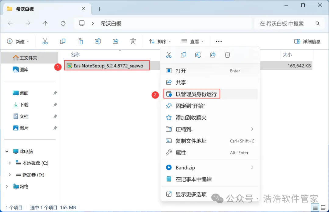 3、找到【希沃白板】应用程序,右键选择【以管理员身份运行】它